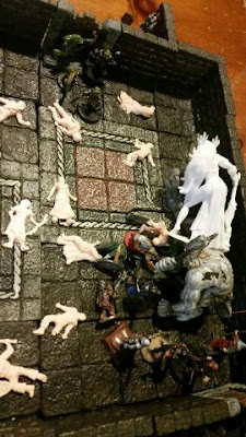 With the giant goblin slain and Duchess missing, the 5 goblins remaining took a quick accounting with one another (Morale check: 6+6 – fail!) and then ran for the north door.